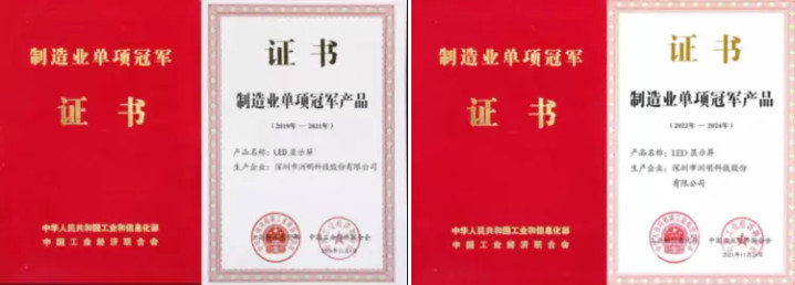 2019年、2022年,洲明LED显示屏连续两届获评“工信部制造业单项冠军产品”。