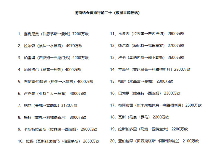 为期一个月的冬季转会窗已经结束,英超球队并没有太多大手笔的球员转会,来自狼队的一球前锋,差点成为标王,曼城强力引援,全力冲击四个冠军,同城的曼联则三进三出,一无所获。
